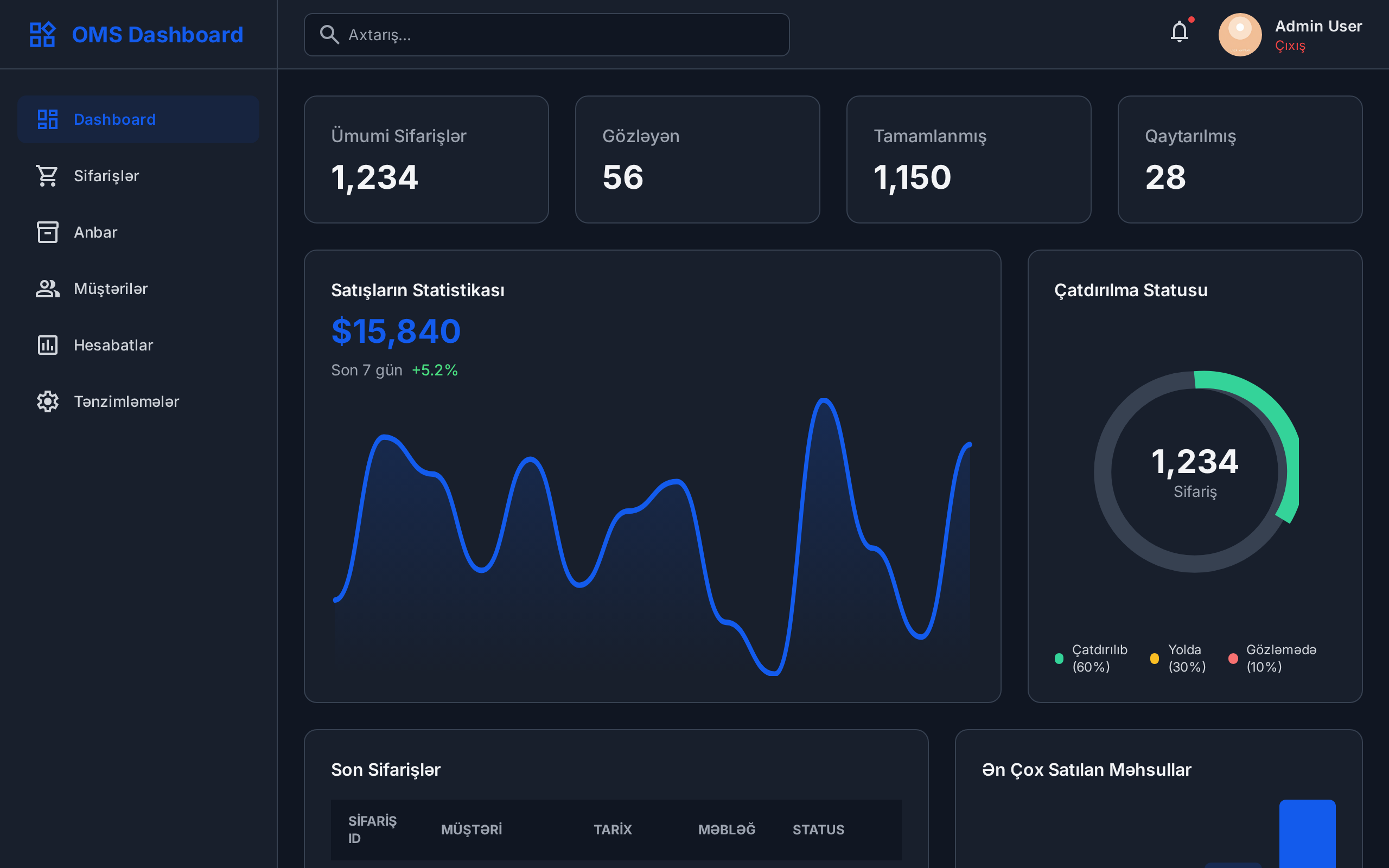 Sifariş İdarəetmə Sistemi (Order Management System) - müəssisənin bütün sifariş proseslərini avtomatlaşdıran və idarə edən mərkəzi platformadır.